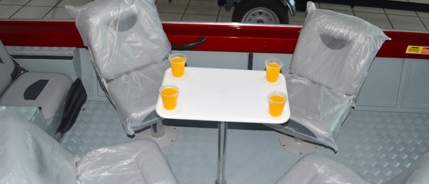 Introdução de um suporte de varas horizontal e uma ampla rede porta objetos no interior do costado