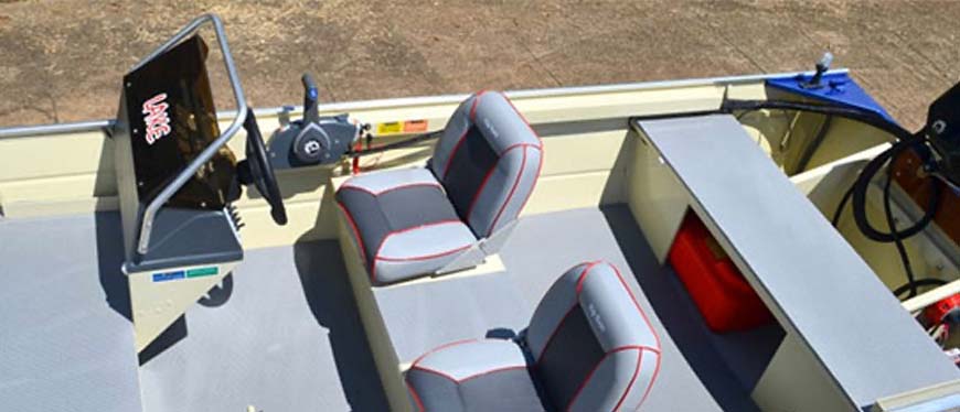 Equipado com duas poltronas giratórias no cockpit, que facilitam a prática da pesca com iscas naturais