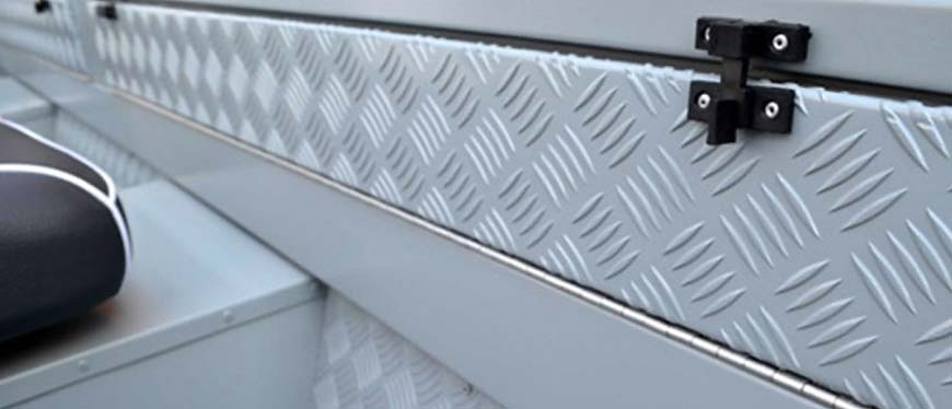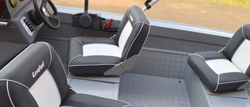 Seu casco em “V” de 12 graus, garante boa estabilidade lateral e navegação confortável, condições ideais para a prática da pesca esportiva