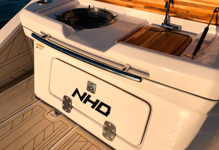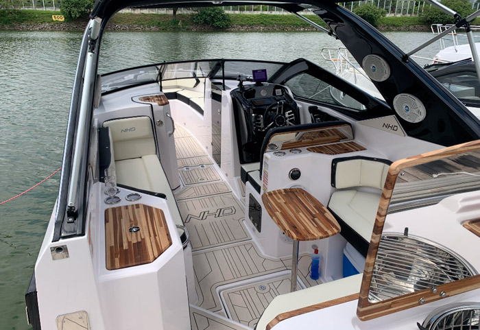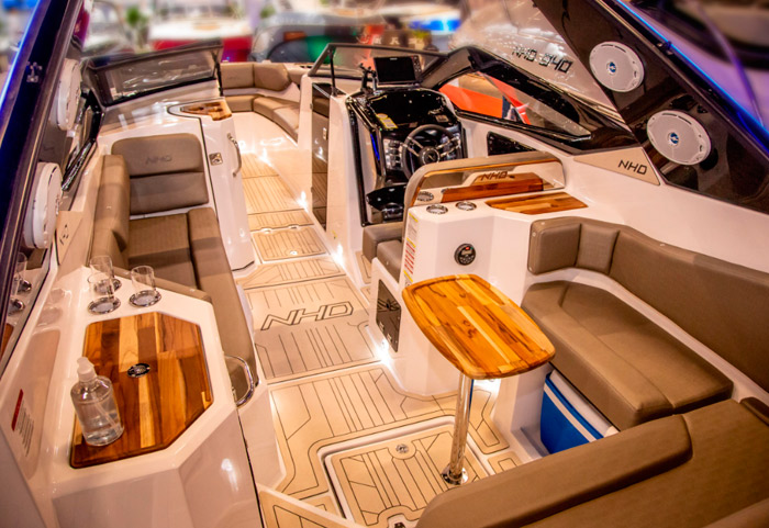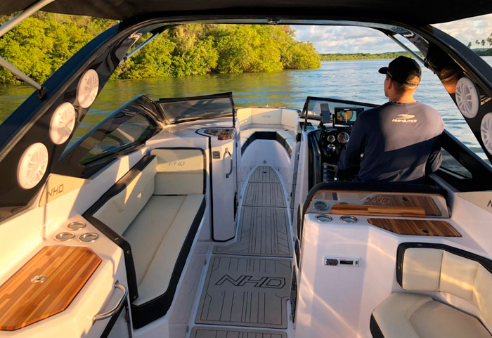 A lancha NHD 270 possui um cockpit espaçoso, especialmente pensado para adequar conforto, segurança e ergonomia. Os assentos de proa são amplos com a opção de transformá-los em um grande solário!