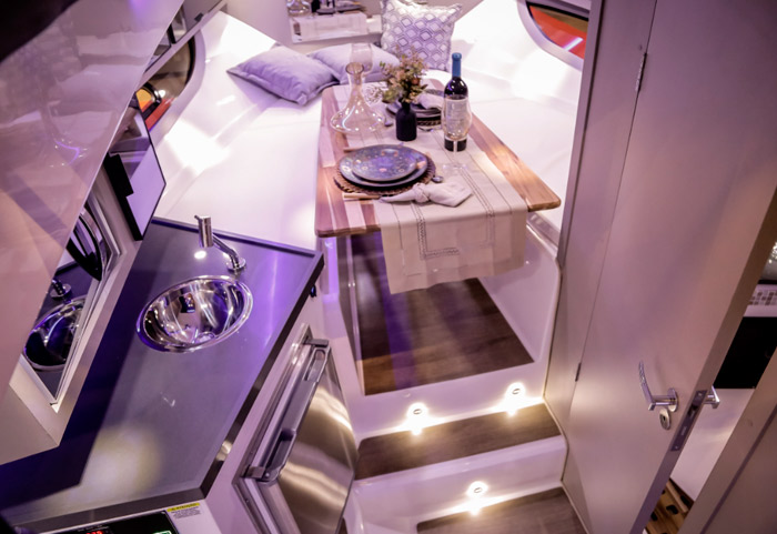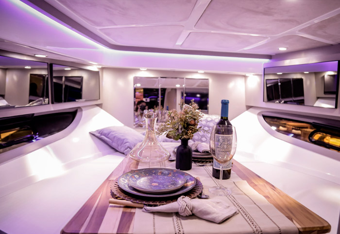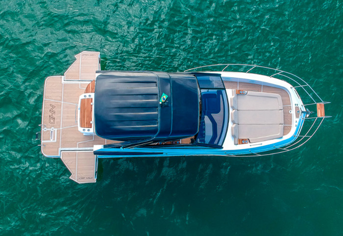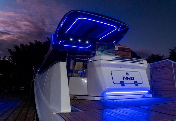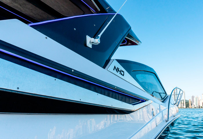 A embarcação também possui um teto rígido e um conceito novo para a categoria de iluminação diurna, o daylight. São leds que compõe o design da embarcação sendo agora possível identificar uma NHD tanto de dia quanto te noite. O design é esportivo e a proa é larga aumentando ainda mais a capacidade de passageiros a bordo.