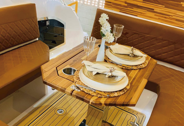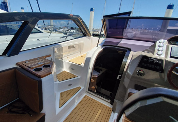 Contornos de alta precisão e proporções esportivas irradiam uma dinâmica incondicional de puro conforto e estilo. A proa-aberta surge impressionante, ocupando o centro das atenções, passando pelo sofisticado cockpit adentrando para uma cabine completa. Alinhado a um design a frente do seu tempo, esse modelo representa mais do que nunca uma personalidade forte e única.