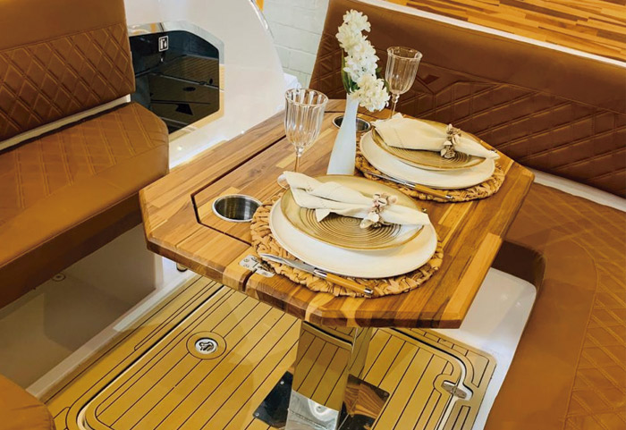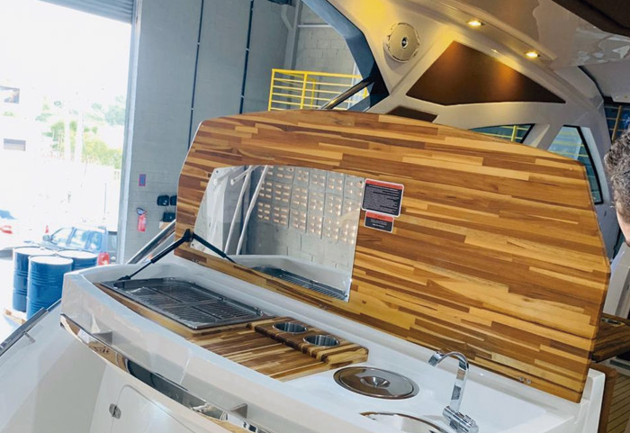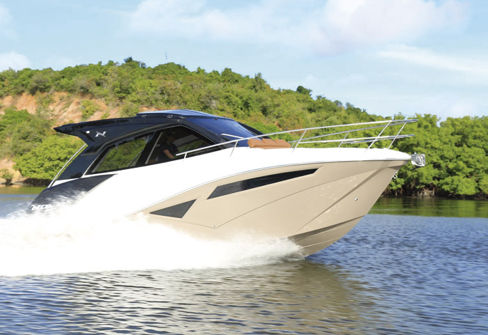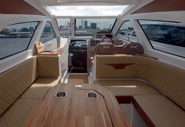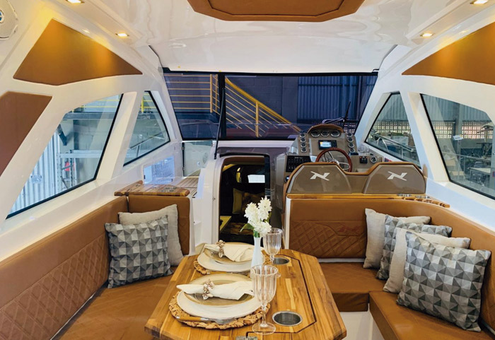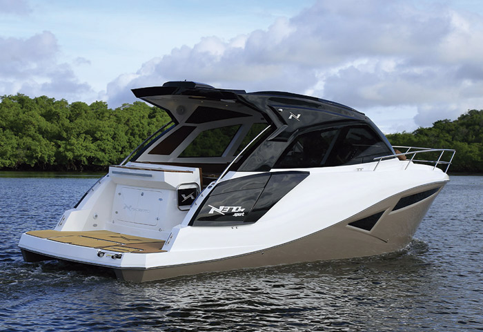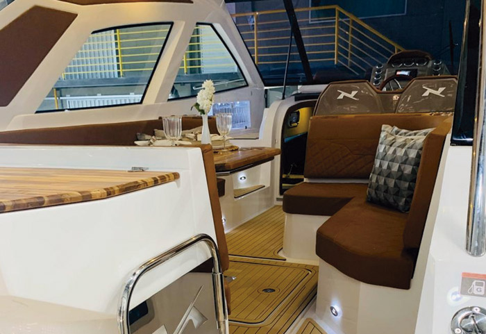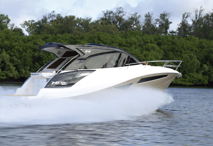 A NX370HT SPORT inaugurou uma nova geração de embarcações que oferece CONFORTO e LIBERDADE de uma forma nunca vista antes. A estrutura projetada possui o padrão de acabamento NX, se fazendo presente por toda extensão do barco. As linhas marcantes e luxuosas entregam um acabamento único nessa sua categoria.