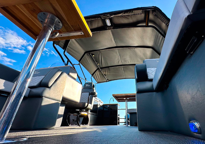 – Kit elétrico padrão: Luzes de navegação em LED (Bombordo, boreste e alcançado), 6 luzes de cortesia, um painel de comando com display touch de comando de 7 polegadas. Chave geral de bateria 3 posições.