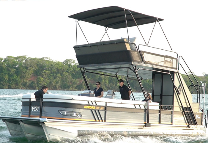 O VCAT Aurora 900 Up é a embarcação ideal para até 24 pessoas. Sua escada proporciona facilidade para qualquer usuário. Seu acabamento com degraus em teca na escada de acesso e escadas acopladas fazem do Aurora 900 UP um sinônimo de sofisticação e tecnologia.