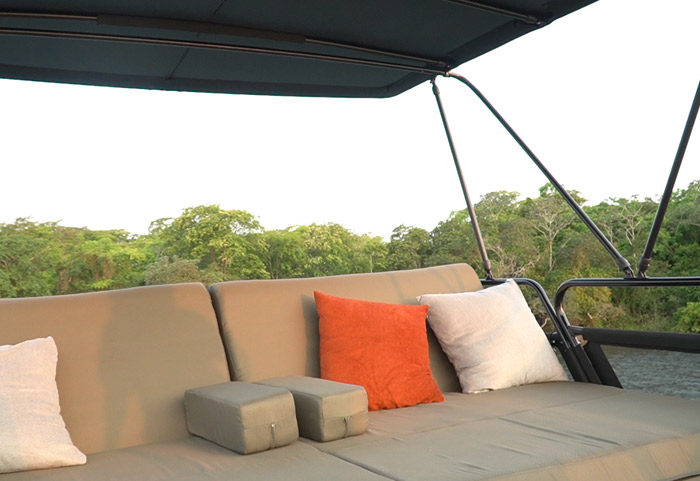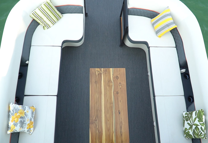Cada Aurora 900 UP vem com um espaço gourmet integrado com cristaleira para momentos agradáveis, um banheiro espaçoso com pia, um fly com sofá retrátil e detalhes como porta copos e uma mesa em teca com geleira para desfrutar com a família e amigos. No cockpit um sistema de comando integrado da embarcação, tudo na ponta dos dedos.